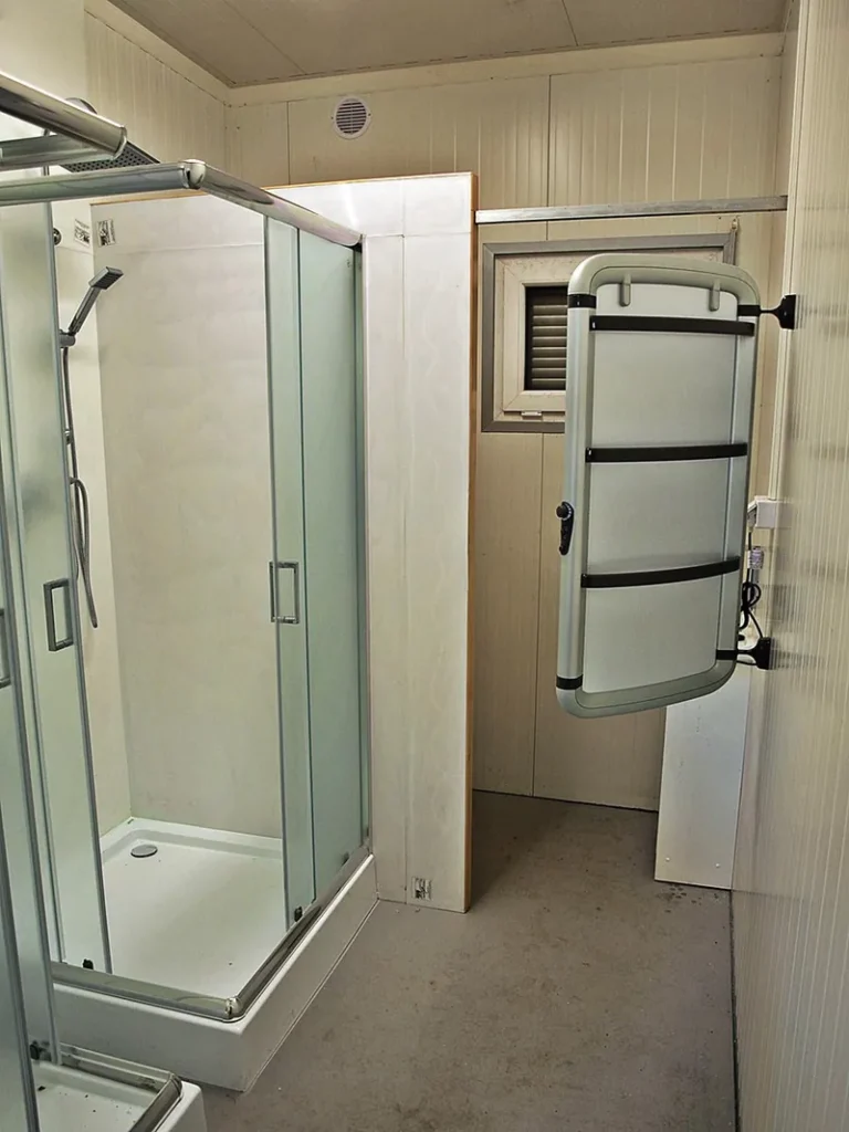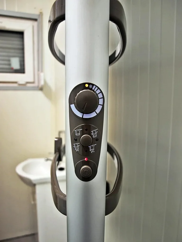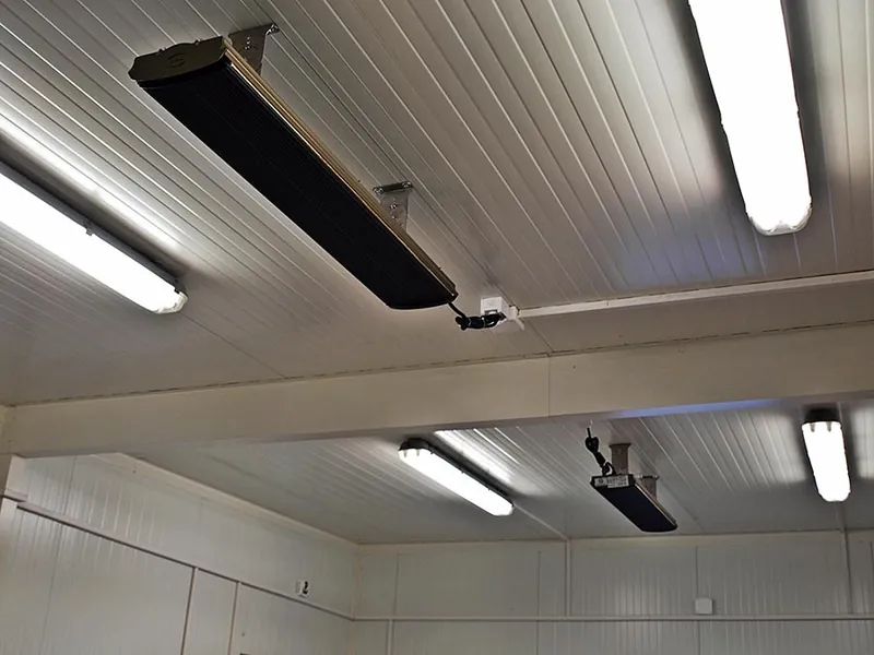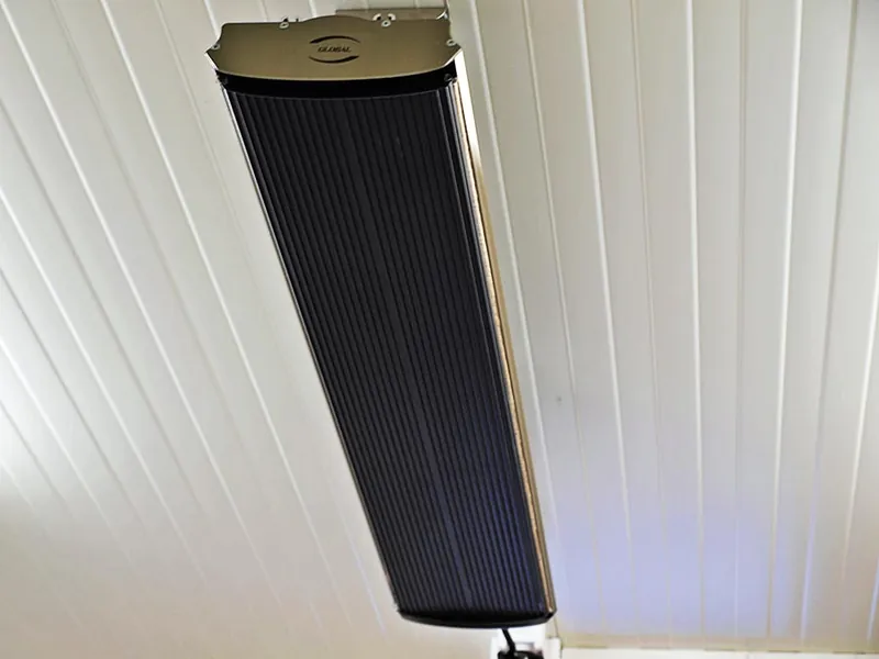 Zastosowane grzejniki wykorzystują wyłącznie podczerwień, która jest bardziej energooszczędna od tradycyjnych grzejników zasilanych prądem. Ciekawostką są urządzenia grzejne montowane do ściany z możliwością ich odchylania. Dzięki takiemu rozwiązaniu wykorzystujemy wszystkie powierzchnie grzejne, a uchwyty grzejnika umożliwiają wysuszenie ręczników. Tryby pracy regulujemy bezpośrednio pokrętłem na grzejniku lub za pomocą programowalnych sterowników.